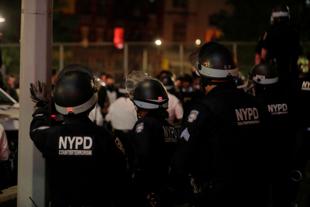 Politiet utsettes for en stor nervepåkjenning når de hver kveld må gå ut og konfrontere demonstranter, forberedt på alt. Manhattan 2. juni. Foto: Brendan Mcdermid/Reuters/Scanpix