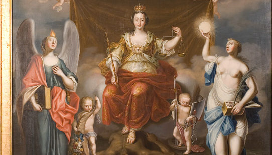 Maleriet «Justitia», der en mørkhudet mann ligger under en lys gudinnes føtter, bør fjernes fra bystyresalen i Bergen, mener MDG.