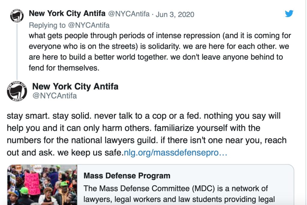 While MFF hasn’t publicly supported Antifa, it coordinates its bail work with the National Lawyers Guild (NLG), which does support Antifa.