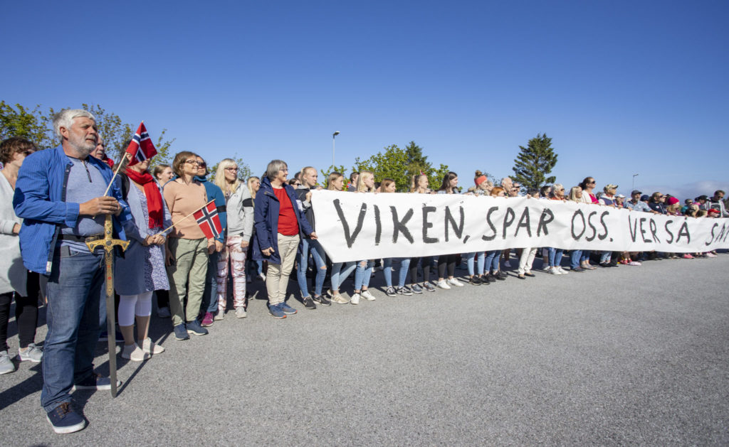 Protestmarkering nylig ved Haramsøy skole mot det planlagte vindkraftverket på Haramsøy. Foto: Svein Ove Ekornesvåg / NTB scanpix