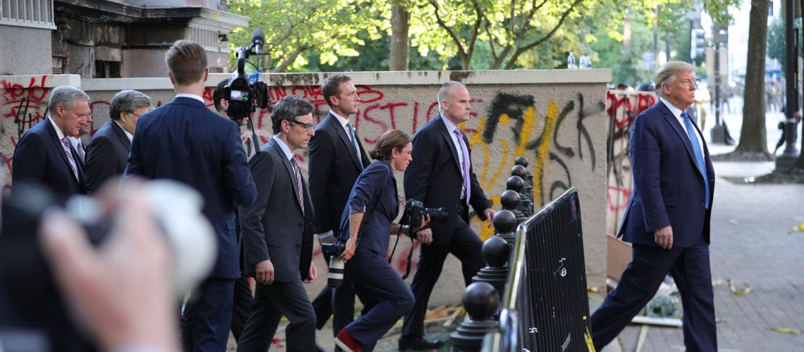 Trumps marsj ut av Det hvite hus, gjennom Lafayette-parken og til St. Joseph-kirken kommer til å bli stående som en markering av at Trump ikke aktet å gi etter for mobben. De generalene som har gitt etter for mediene og tatt avstand fra at de deltok, og kaller det uheldig politisering, har ikke forstått at det å redde nasjonen ikke er politisering. De fortjener ikke å bære uniform. Foto: Tom Brenner/Reuters/Scanpix