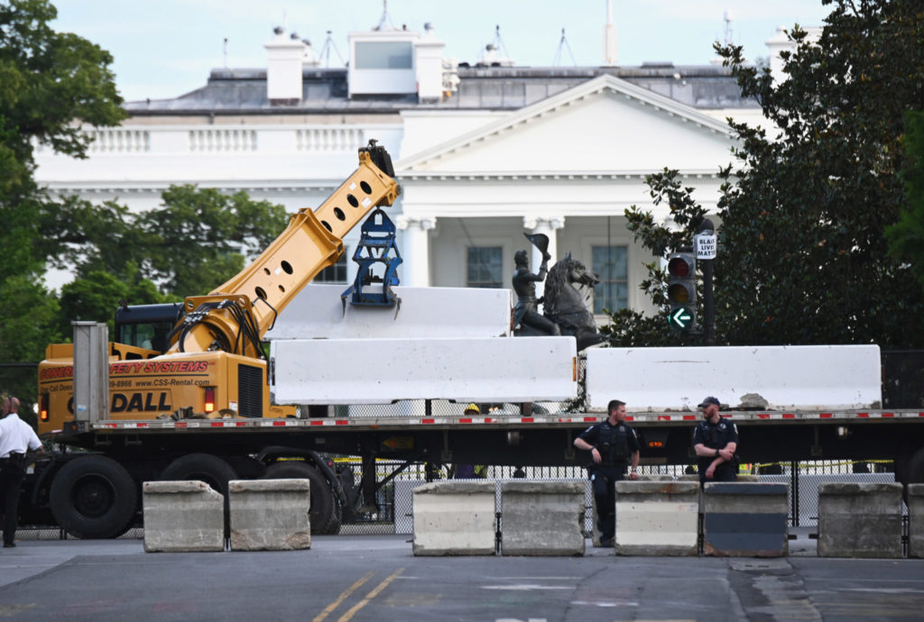 Bildene lyver ikke og forteller noe mediene ikke vil si: Her får man en ide om hvor nær Det hvite hus aktivistene opererer. Statuen av Andrew Jackson som de holdt på å rive i helgen, ligger innenfor de sperringene man nå setter opp. Aktivistenes psykologiske krigføring er klar: Ved å velte Jackson, skulle de gjøre klart hvilken skjebne mannen i Det hvite hus kan vente seg. Foto: Erin Scott/Reuters/Scanpix