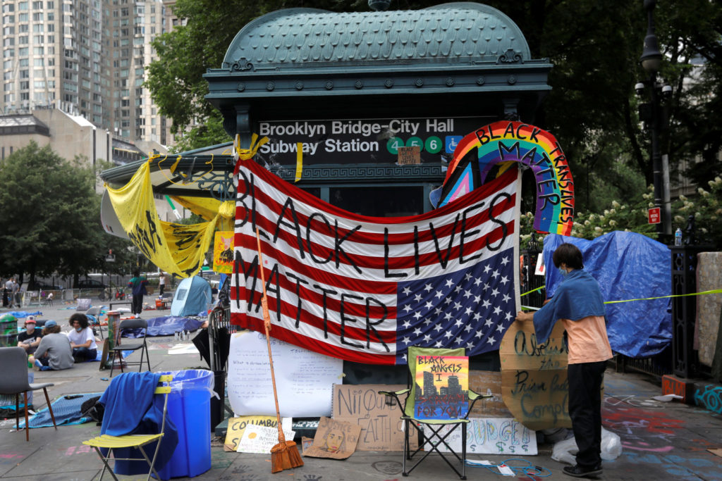 Demokratene ved ordfører Bill de Blasio følger nærmest en oppskrift på anarki: Degradering av politiet, fritt armslag for aktivister og hjemløse. Kaos vokser organisk frem. Bildet er fra 1. juli. Foto: Mike Segar/Reuters/Scanpix (Tucker ligger nederst)