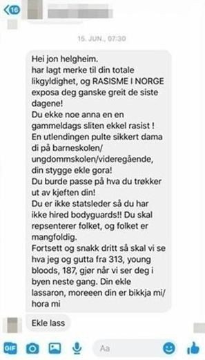 Meldingen Helgheim mottok på messenger 15. juni.