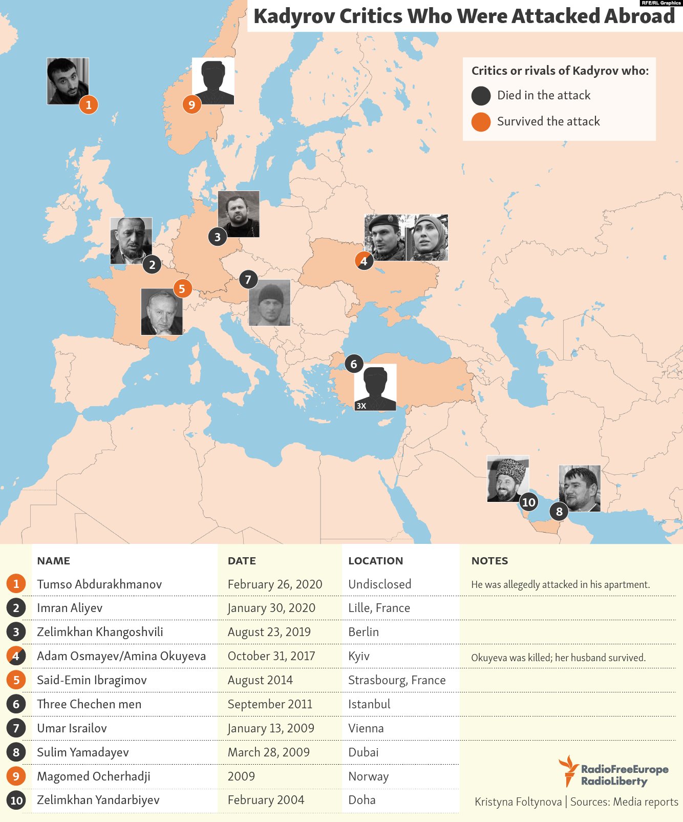 To russere hjemmehørende i Tsjetsjenia ble søndag arrestert av østerrisk politi i Wien, mistenkt for å stå bak drapet på en kjent tsjetsjensk opposisjonell. Drapet er det siste i en serie av angrep på opposisjonelle tsjetsjenere som antas å være iscenesatt av Tsjetsjenias leder, Ramzan Kadyrov.