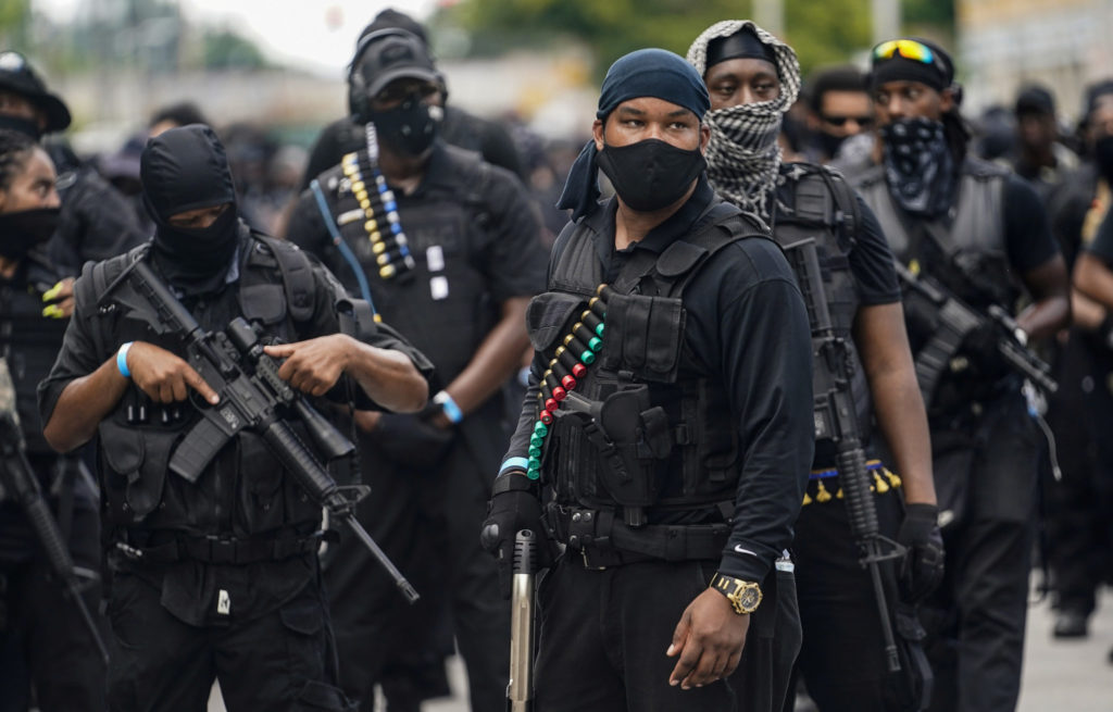 Medlemmer av den militante aktivistgruppen NFAC i in Louisville, Kentucky. Foto: REUTERS/Bryan Woolston