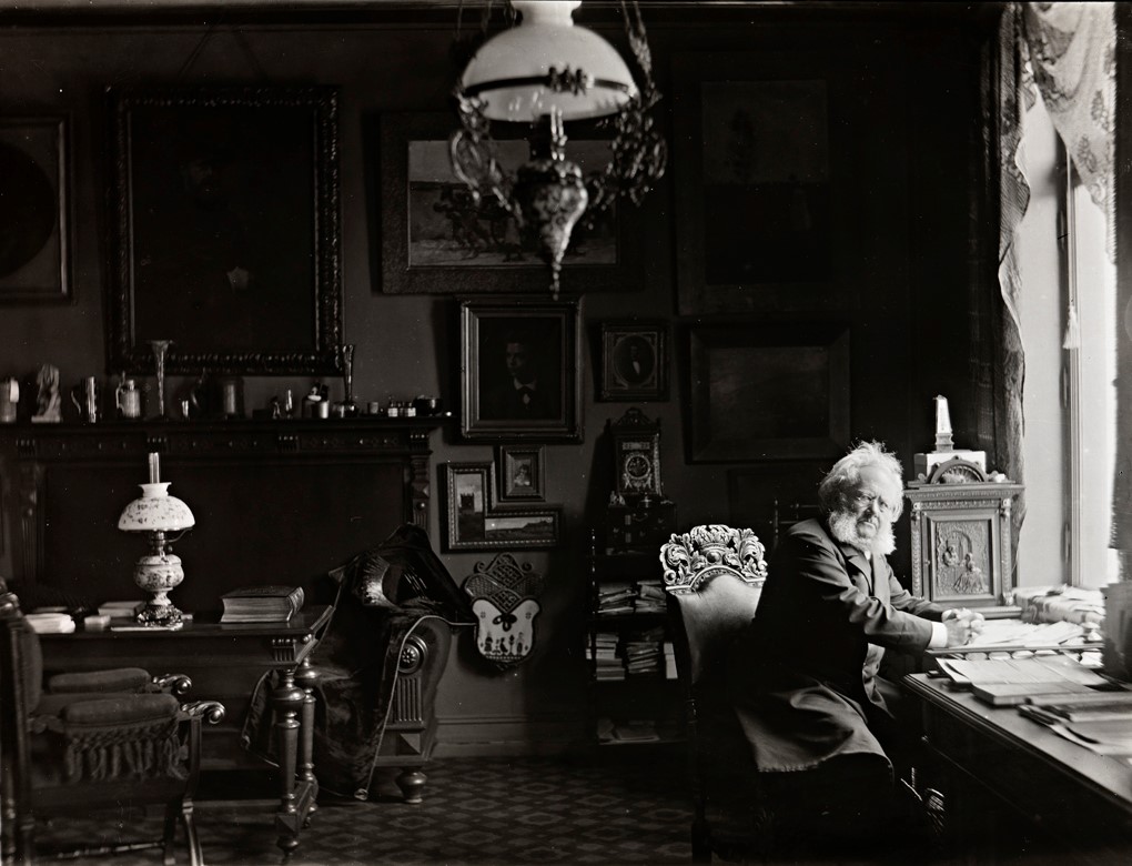 Henrik Ibsen fotografert i sitt hjem i Arbiens gate 1 i Kristiania, c. 1897-98.