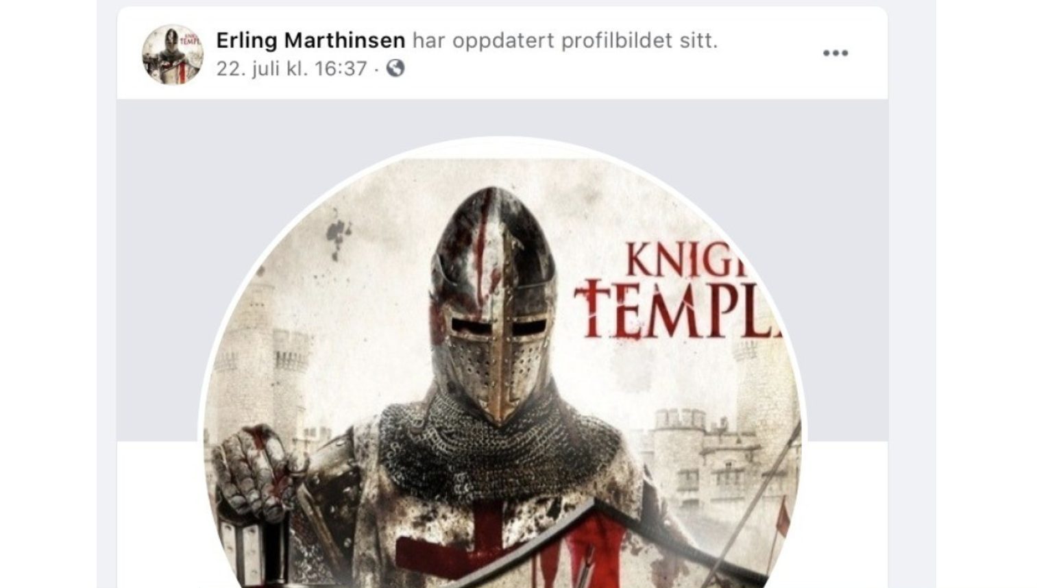 Journalist Erling Marthinsens får sparken fra Resett etter at han endret profilbildet på Facebook til en tempelridder 22. juli.