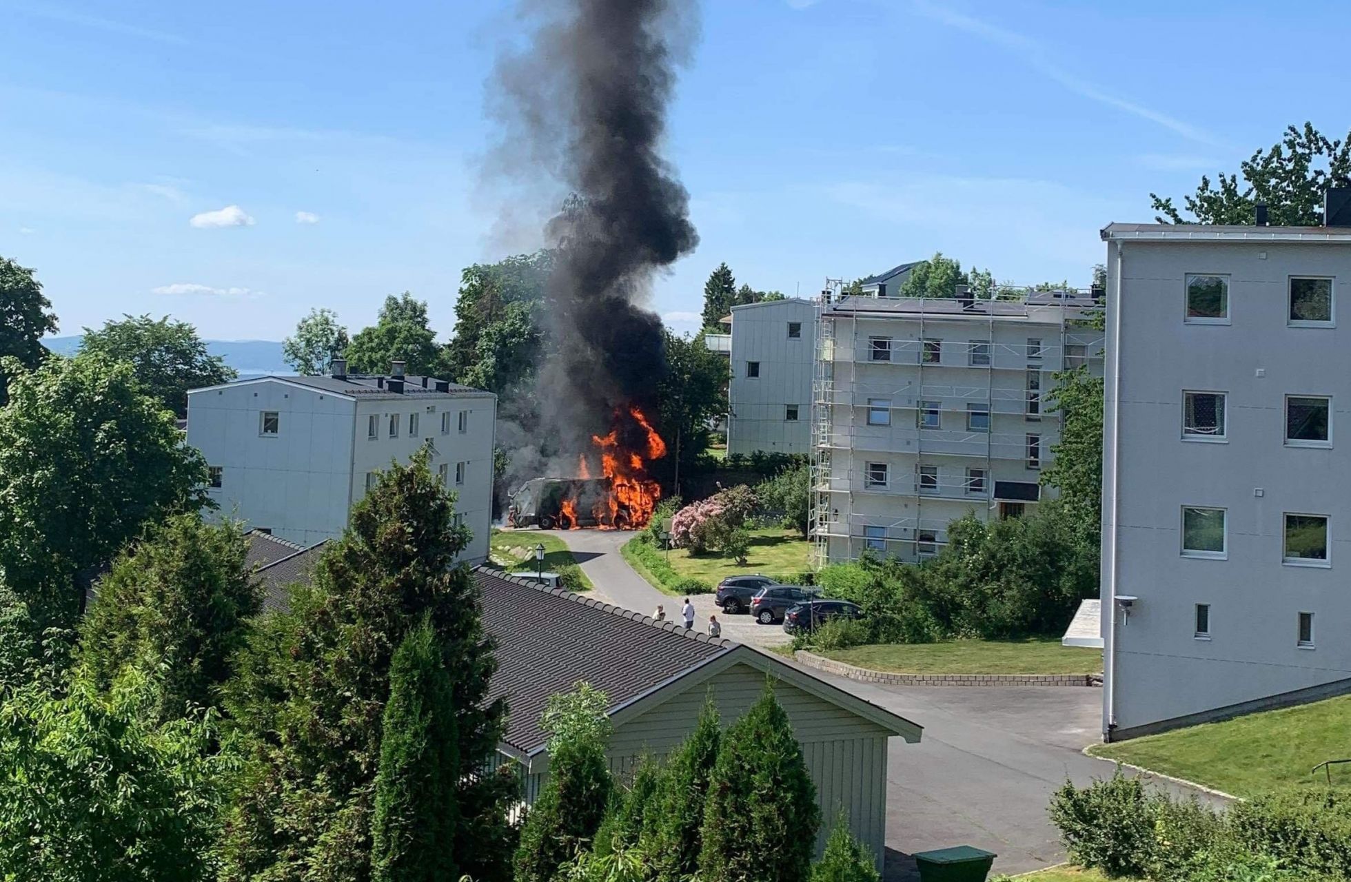 Det brenner i en gassdrevet bil som står innendørs avfallsanlegget Isi på Skui i Bærum. En skarpskytter er sendt til stedet.