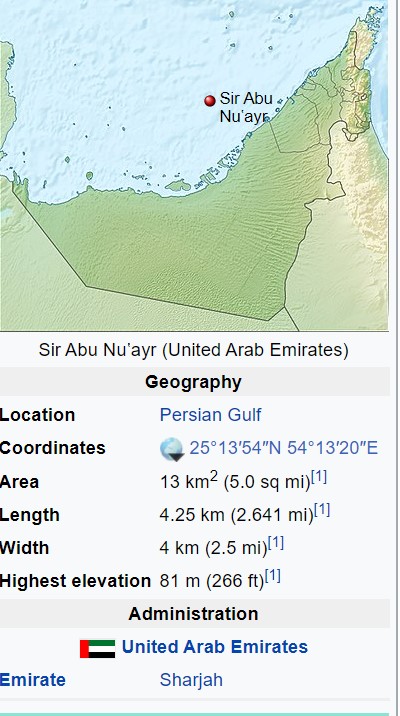 Sir bu Nair øya, der iranske fiskebåter skal ha fisket ulovlig. Foto: Shurooq.gov.ae