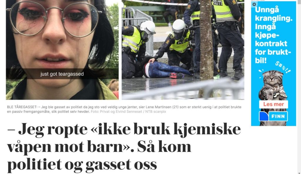 Ifølge VG brukte bergenspolitiet kjemiske våpen i Bergen lørdag. Ja, de gasset motdemonstrantene, ifølge avisen. Befinner vi oss i Norge i 2020 eller i Tyskland i 1943?