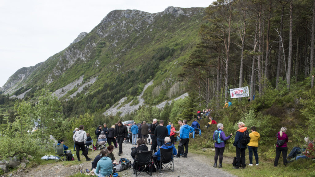 Vindkraftdemonstranter på Haramsøya på Sunnmøre torsdag. Foto: Olav Skarstein, Lokalavisa Nordre / NTB Scanpix