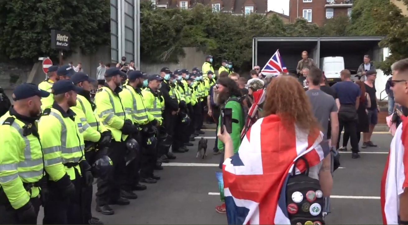 «Refugees welcome» sto det på plakatene under en demonstrasjon i Dover for de mange tusen illegale migrantene som ankommer Storbritannia med gummibåter fra Frankrike. Det ble holdt appeller som betegnet alle de som ikke vil ha ukontrollert innvandring som «rasister og avskum».