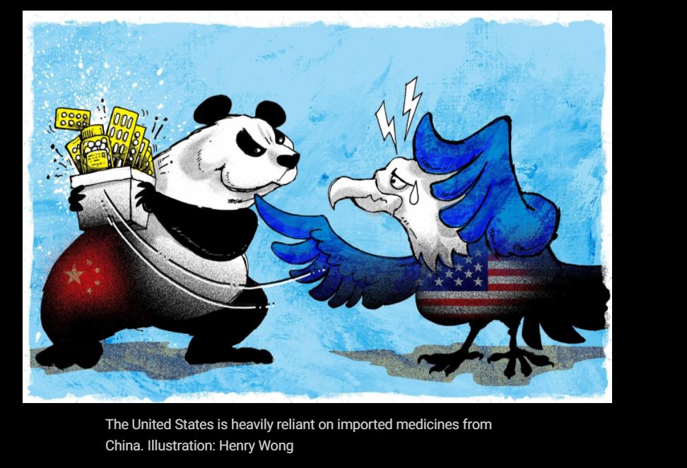 Ifølge avisen South China Morning Post diskuteres det nå å stoppe all eksport av medisiner fra Kina til USA. Skulle så skje, vil det være katastrofalt for USA, som etter årtier med outsourcing til Kina er helt avhengige av medisiner produsert i Kina.