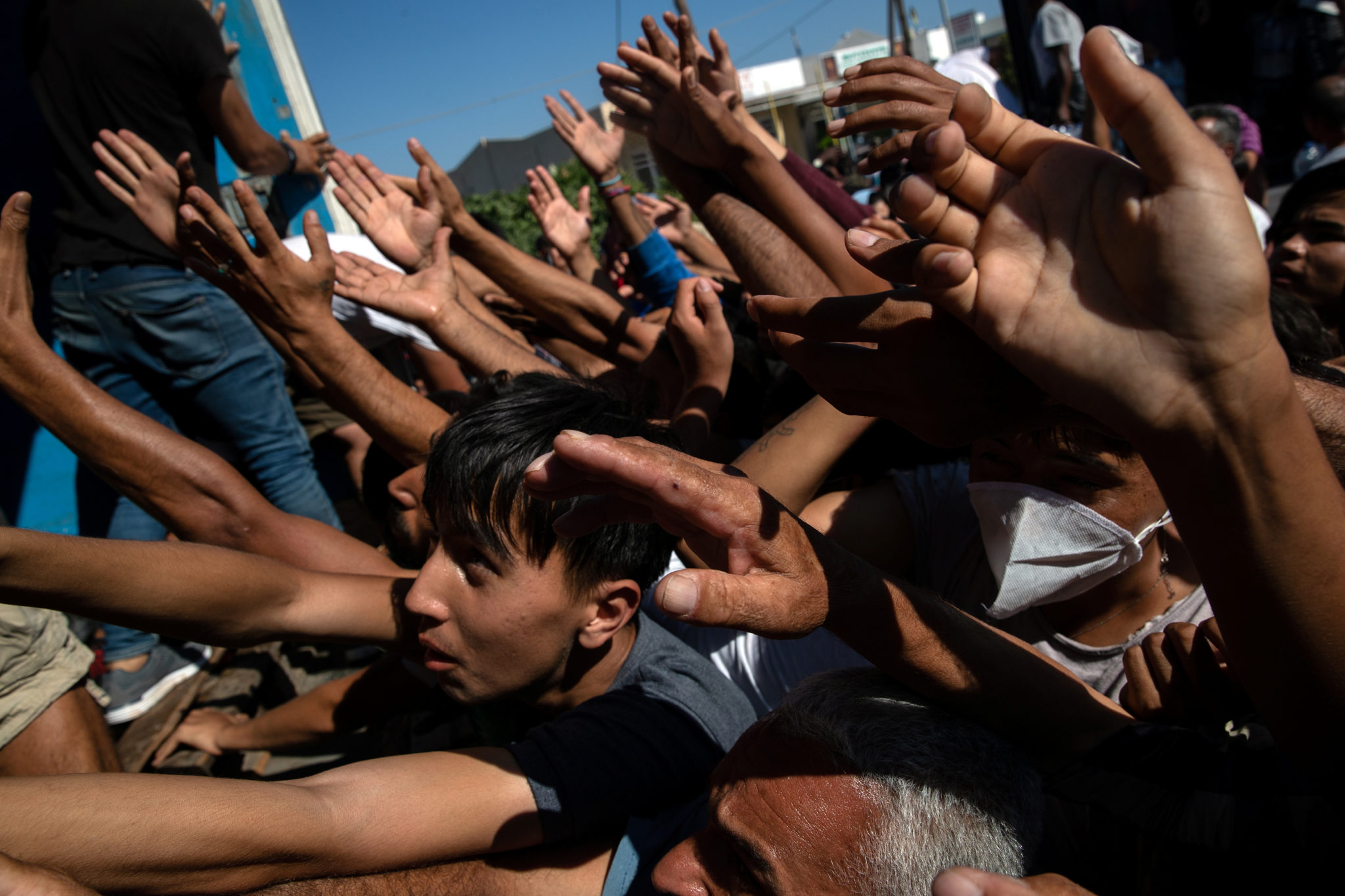 Mat deles ut i Moria-leiren på Lesbos den 20. september 2020. Foto: Alkis Konstantinidis / Reuters / NTB scanpix.