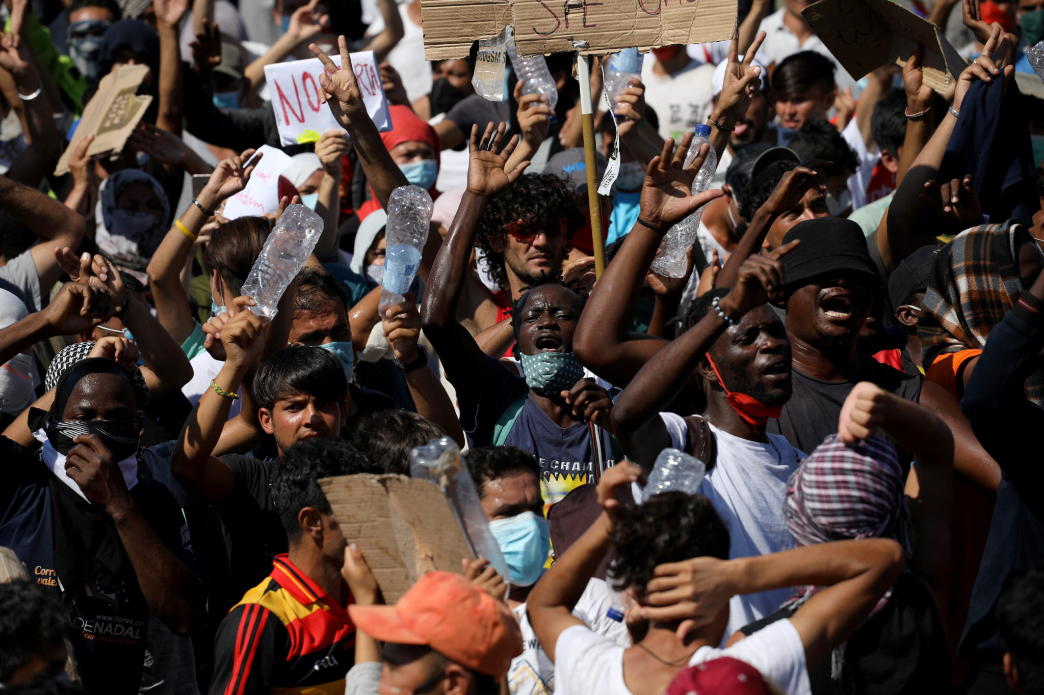 Sinte lokale innbyggere og tusenvis av desperate migranter som mistet alt i Moria-brannene, gjør situasjonen på den greske øya Lesvos stadig mer anspent.