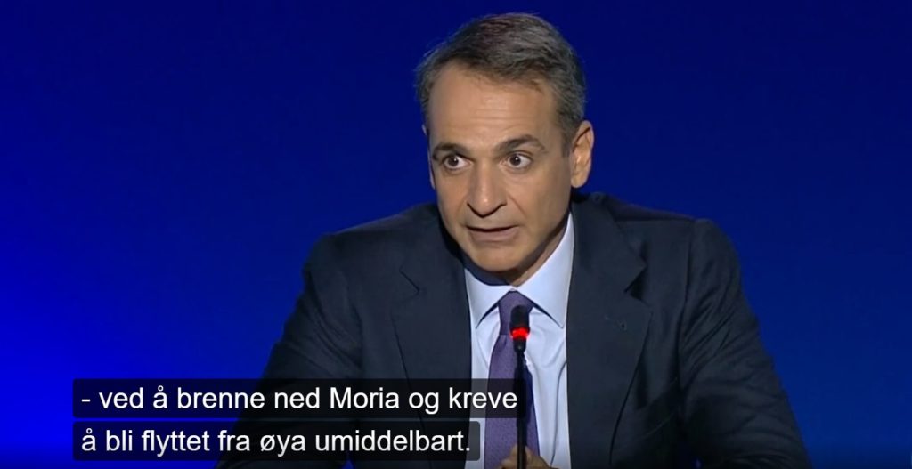Hellas’ statsminister Kyriakos Mitsotakis beskylder beboerne i Moria-leiren for utpressing mot greske myndigheter ved å sette fyr på leiren.