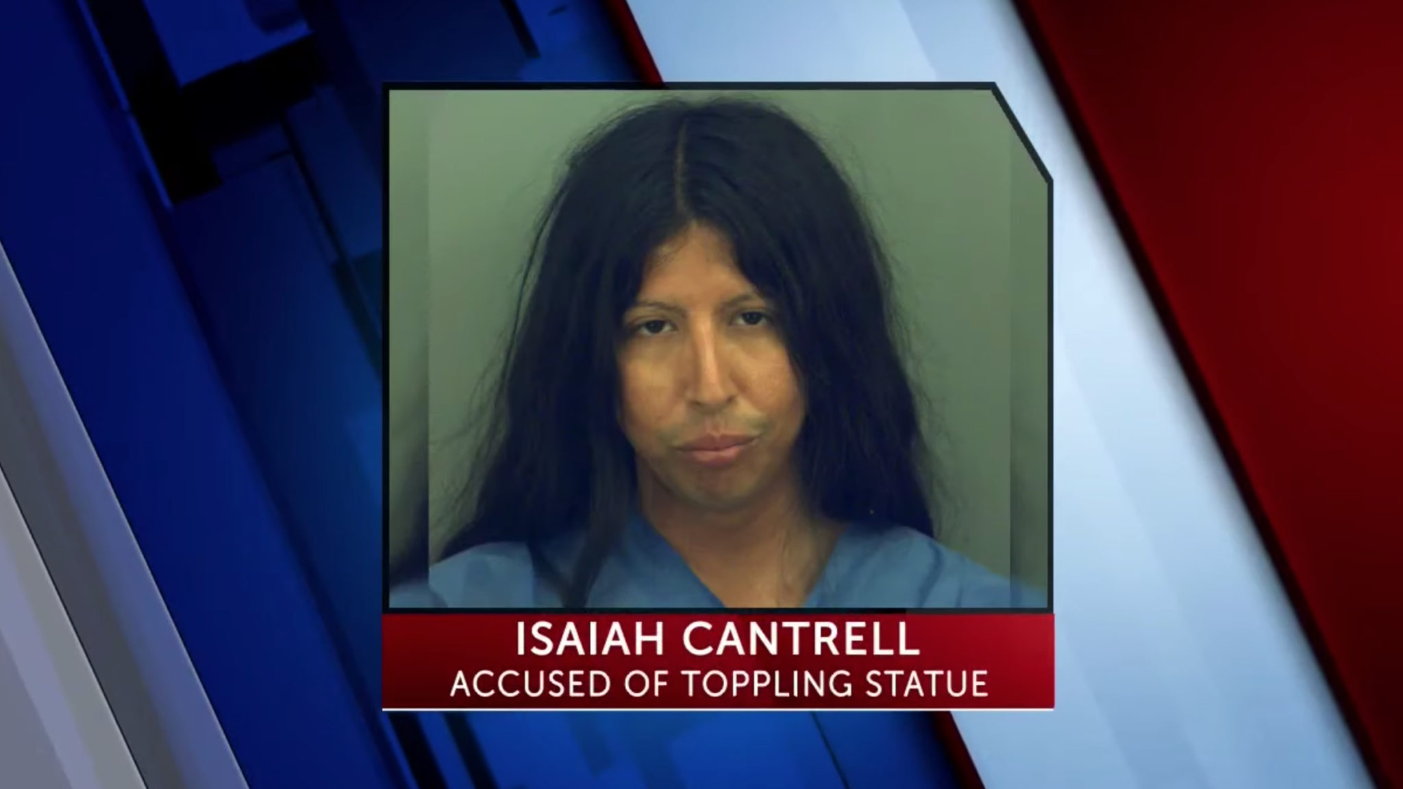 Politiet i El Paso har arrestert en 30 år gammel mann ved navn Isaiah Cantrell som er mistenkt for ugjerningen, der statuens hode ble knust og en arm revet av.