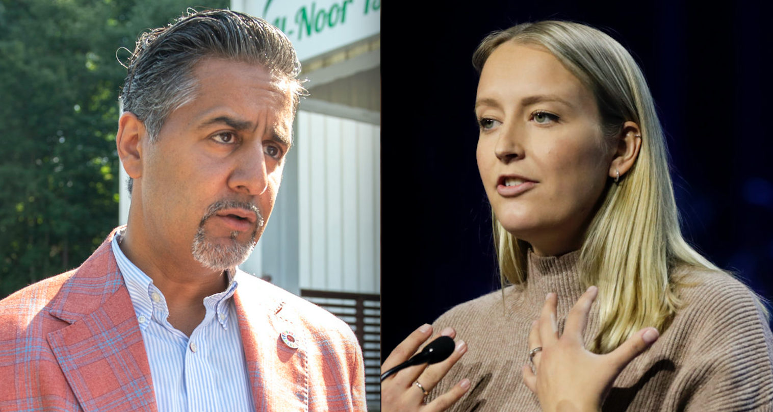 Kultur- og likestillingsminister Abid Raja og Unge Høyre-leder Sandra Bruflot. Foto: Annika Byrde og Vidar Ruud / NTB.