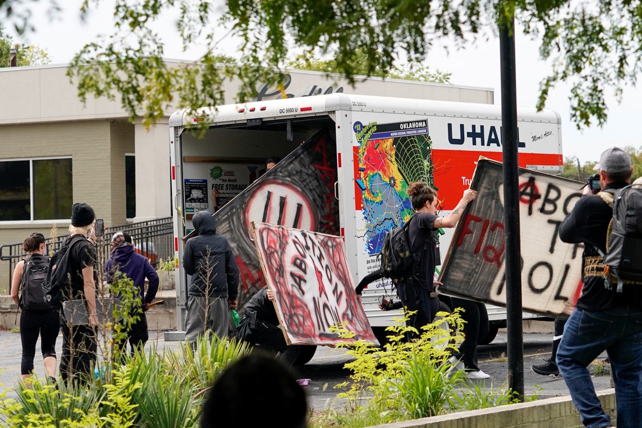 Det er forbausende å se spriket mellom de offisiøse byråbildene og twitterfeeden. Det er to verdener. Reuters skriver at demonstranter henter utstyr fra en U-haul, en leiebil, når det i virkeligheten er en Soros-finansiert organisasjon som sørger for at aktivistene får våpen til å konfrontere politiet med. Foto: Bryan Woolston/Reuters/Scanpix