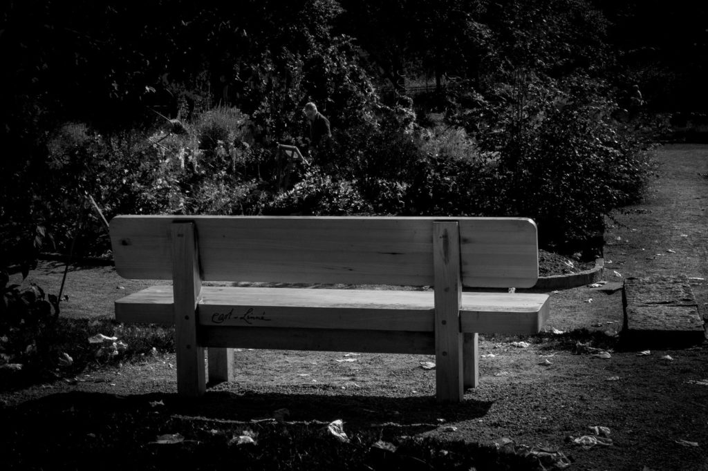 Benken tilegnet Carl von Linné i Botanisk hage i Oslo. Foto: Privat.