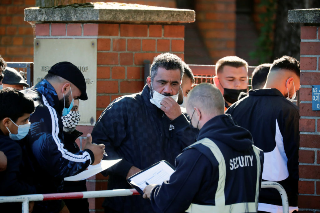 Arafat Abou-Chaker justerer ansiktsmasken i begravelsen av moren i Berlin, 18. september 2020. Foto: Hannibal Hanschke / Reuters / NTB