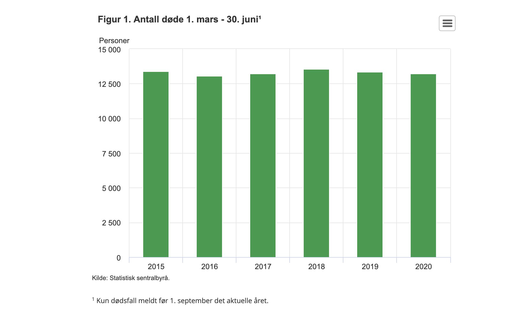 I motsetning til en del andre land har ikke Norge hatt overdødelighet under de første månedene av koronapandemien. Det har vært litt forskjellig utvikling i dødelighet i ulike deler av befolkningen, men generelt var dødeligheten noe lavere i perioden fra mars til juni i år enn i årene før, skriver SSB i en fersk rapport.