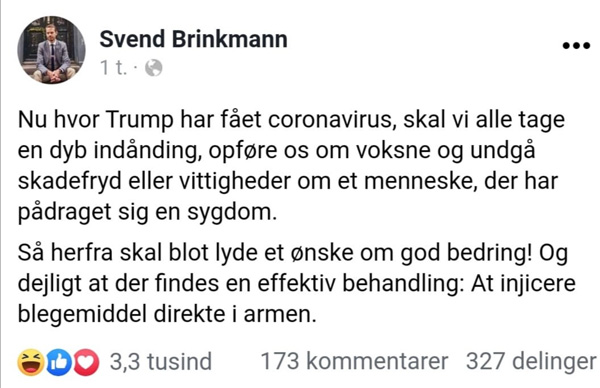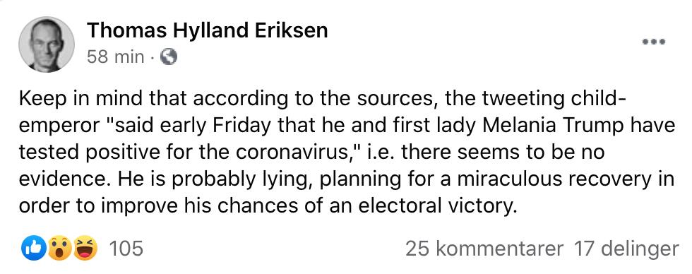 Trump er blitt syk, og dermed handler alt om Trump. Igjen. Trumps fiender forsøkte å utnytte situasjonen med å si: «Det fortjener du», men det slår bare tilbake på dem selv.