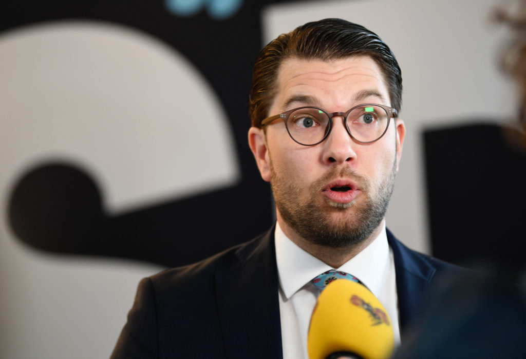 Sverigedemokraterna og deres leder Jimmie Åkesson vil kutte i bistand og klimatiltak, men lover 85 milliarder kroner i kontantstøtte til det svenske folk. Foto: Fredrik Sandberg / TT / NTB
