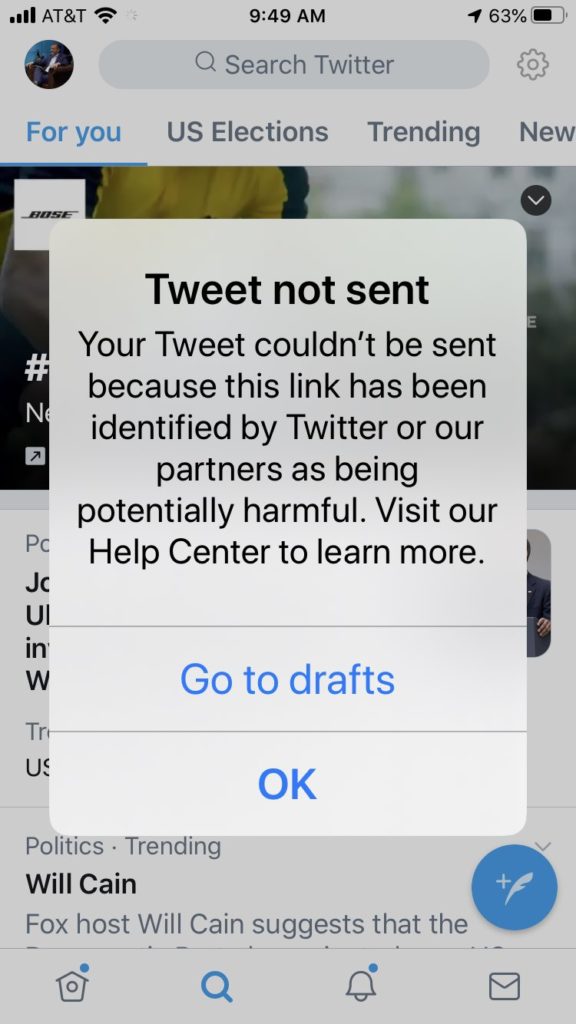 In the space of about 24 hours, Twitter has not just blacked out hugely important reporting from a major media outlet, it has censored or suspended the accounts of White House Press Secretary Kayleigh McEnany, the Trump campaign’s official account, and the account for House Judiciary Committee ranking member Rep. Jim Jordan, which published the Post story on its own website to get around Twitter’s censorship, prompting Twitter to block a link to the committee’s webpage.