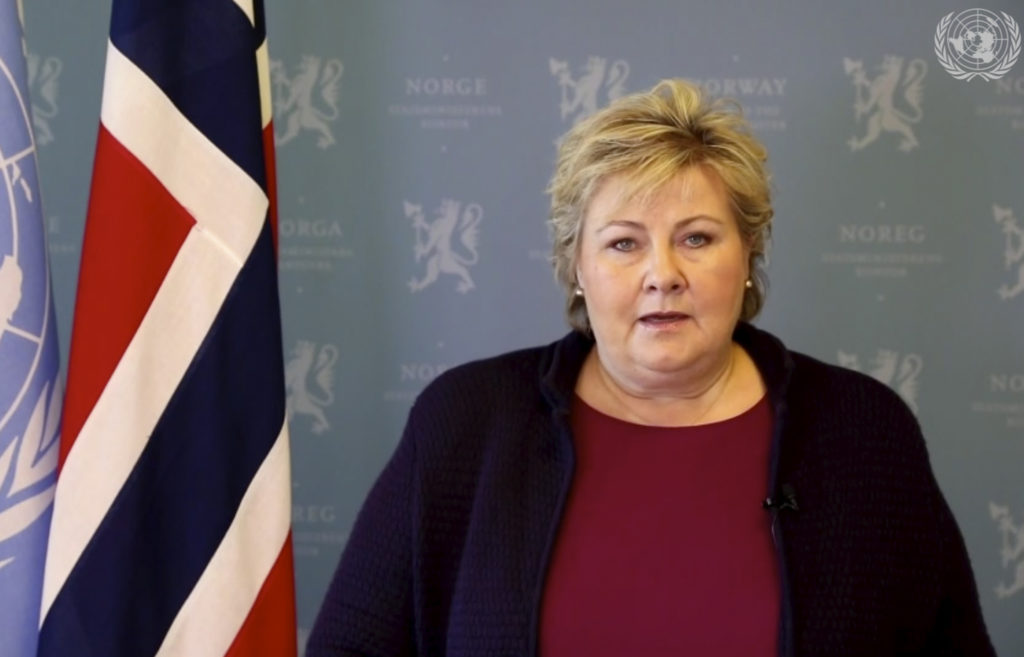 Erna Solberg. Foto: UNTV via AP0/NTB