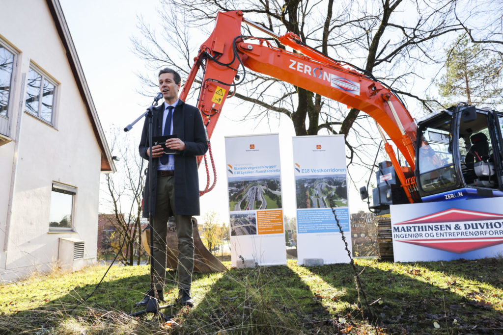 Han var til stede da byggingen av E18-strekningen mellom Lysaker og Ramstadsletta startet klokken 11 tirsdag.