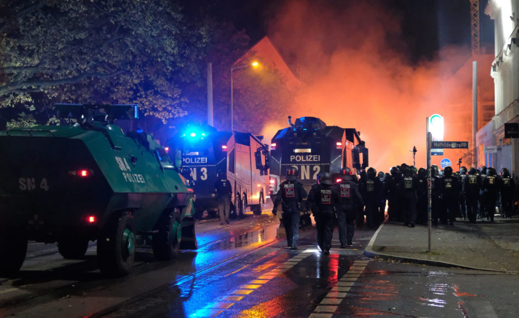Politiet i Leipzig sier de ble angrepet av demonstranter som protesterte mot koronarestriksjoner i Tyskland.