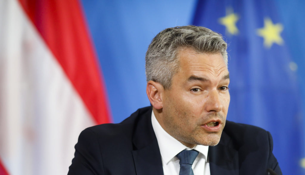 Østerrikes innenriksminister Karl Nehammer sier at kampen mot organisert, islamsk terror er avgjørende for rikets sikkerhet. Foto: AP Photo / Markus Schreiber / NTB