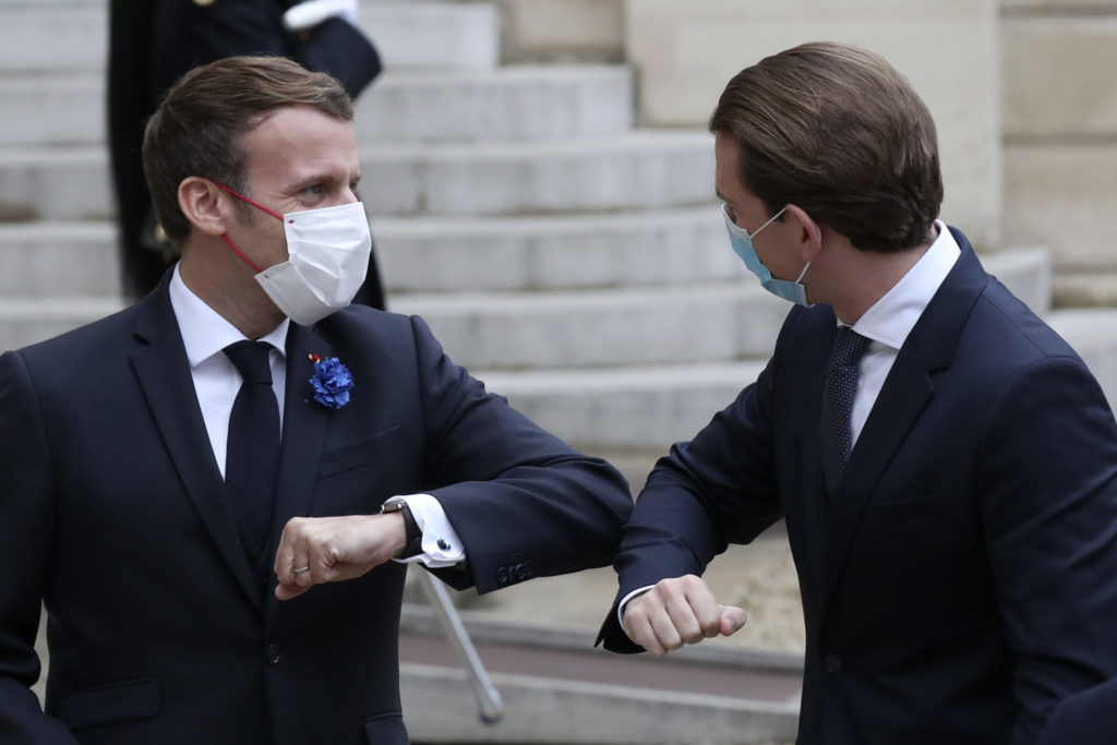 The belated realisation by Europe’s leaders about the inadequacies of their ability to defend the continent from further acts of Islamist-inspired terrorism is as welcome as it is long overdue. Pictured: French President Emmanuel Macron, left, welcomes Austrian Chancellor Sebastian Kurz upon his arrival prior to their meeting at the Elysee Palace, in Paris, Tuesday, Nov. 10, 2020. The leaders of France, Germany, Austria and the EU are meeting Tuesday to discuss Europe’s response to terrorism threats after a string of attacks. Macron and Kurz are meeting in person after both of their countries have lost lives to Islamic extremist attackers in recent weeks. Photo: AP Photo/Michel Euler/NTB