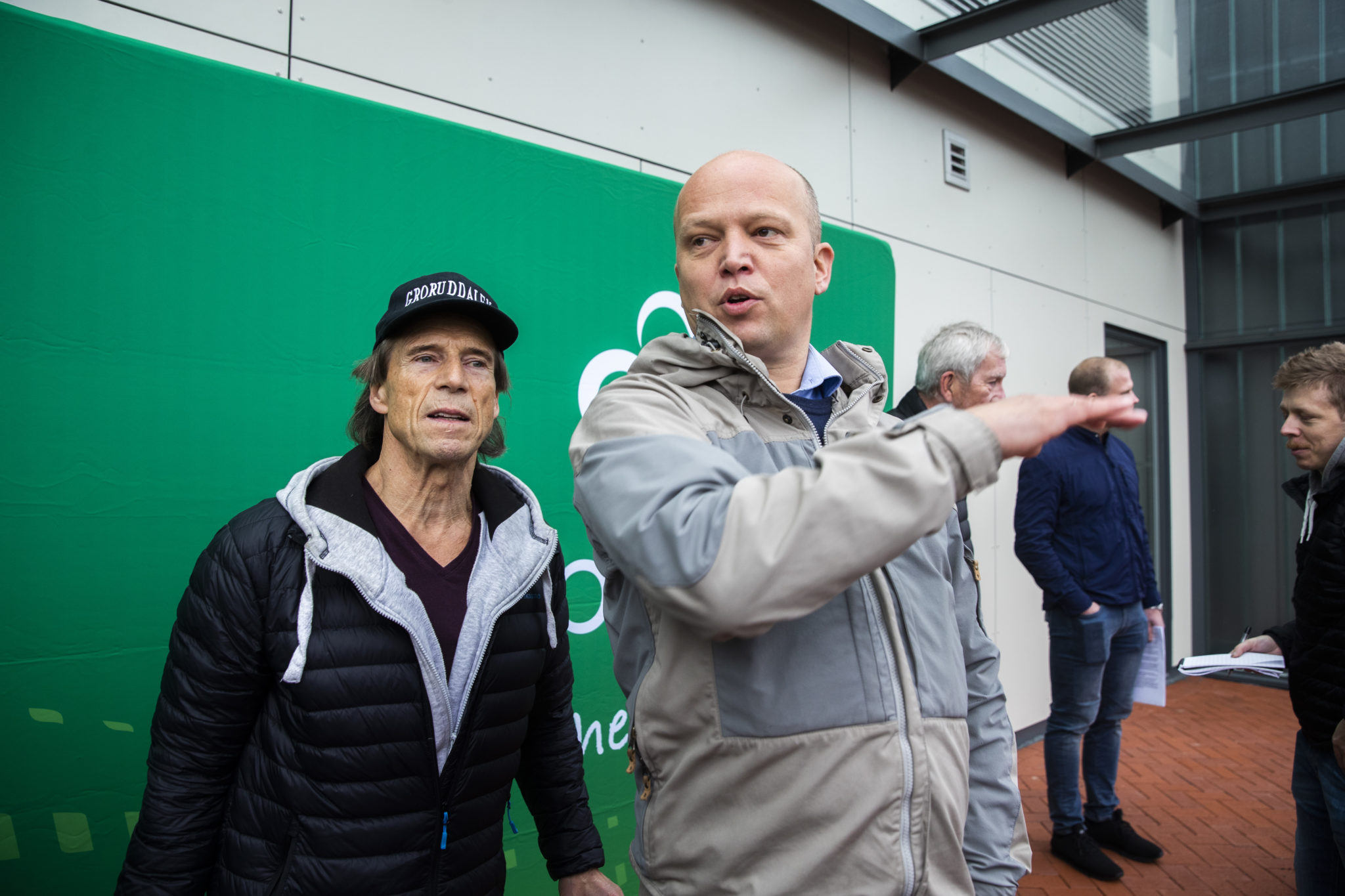 Jan Bøhler og Sp-leder Trygve Slagsvold Vedum på Grorud flerbrukshus i Oslo den 1. oktober 2020. Foto: Berit Roald / NTB.