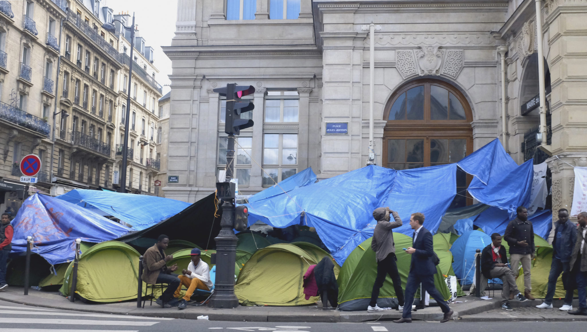 Om lag 2000 personer, for det meste fra Afghanistan og afrikanske land, er kjørt bort av politiet fra en ulovlig teltleir like utenfor Paris.