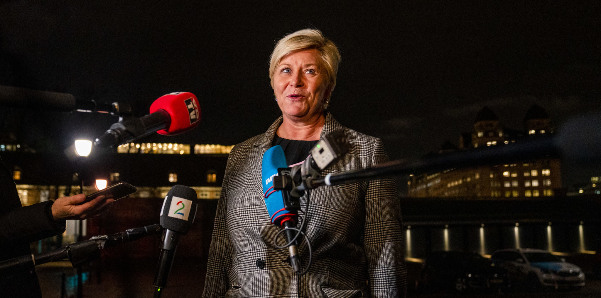 Frp-leder Siv Jensen forlot forhandlingene om statsbudsjettet etter bare en halv time. Hun sier det er opp til regjeringen å finne en løsning.