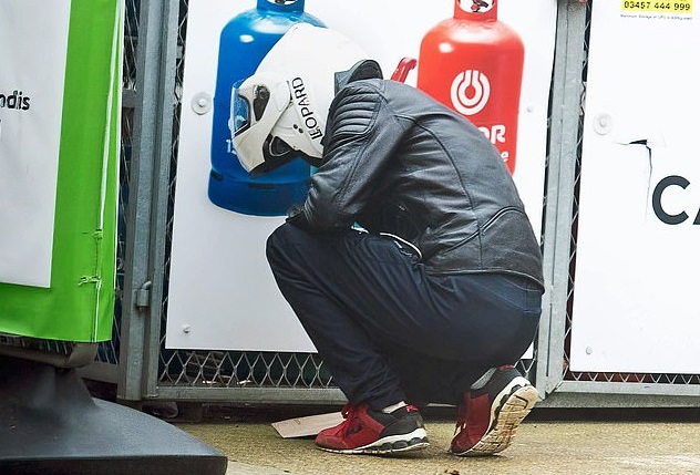 Denne konvolutten ble lagt ut under noen gassbeholdere utenfor en bensinstasjon i Storbritannia. Det tok ikke lang tid før det dukket opp en mann («Anas») på moped for å hente konvolutten.