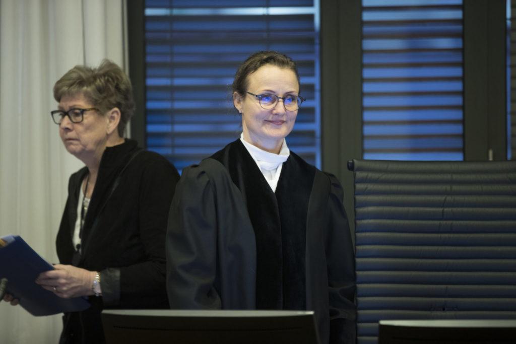Dommer Katinka Mahieu, idet første runde av rettsaken mellom 24 omsorgsarbeidere og det private helse-og omsorgsselskapet Aleris Ungplan & Boi AS startet i Oslo tingrett 14. januar 2019. Foto: Berit Roald / NTB