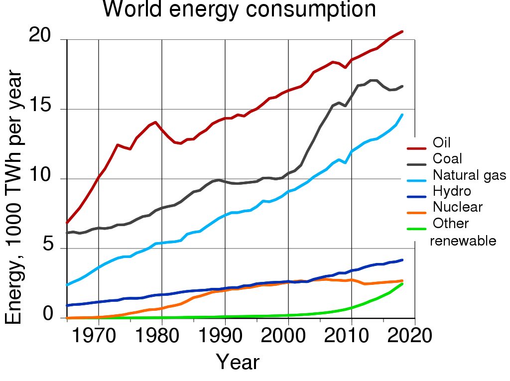Verdens energiforbruk viser en økende trend, og er i hovedsak basert på fossile energikilder: