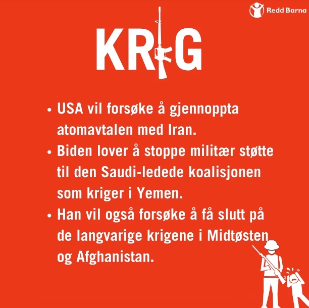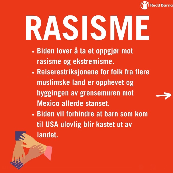 Dette er stygg propaganda. Å gjøre Trump til en busemann for all verdens barn, gjør ikke Redd Barna til noen hjertevarm organisasjon. Trump startet ingen kriger, tvert imot fikk han i stand flere fredsavtaler. Hvert eneste punkt kan argumenteres fra en annen vinkel. Men det bryr ikke Redd Barna seg om der de gir inntrykk av at Biden vil bli den nye frelseren.