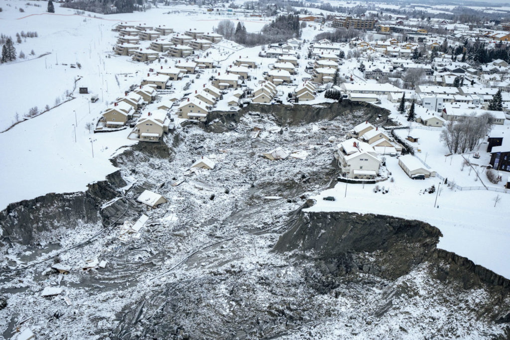 Politiet etterforsker et mulig tyveri fra en evakuert bolig i Nystulia i Gjerdrum. Boligeieren anslår at boligen ligger 15 meter fra skredkanten. Foto: Gorm Kallestad / NTB