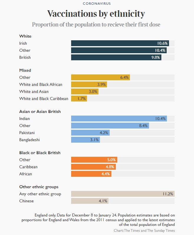 I Storbritannia ser man det samme problemet. De svarte ønsker i langt mindre grad å la seg vaksinere, til tross for at de har høyere risiko for å smittes og dø av covid-19. Hele 72 prosent av de svarte sier at de ikke vil ha vaksine. Det samme gjelder for de muslimske minoritetene. Indiere i Storbritannia har ingen slike problemer.