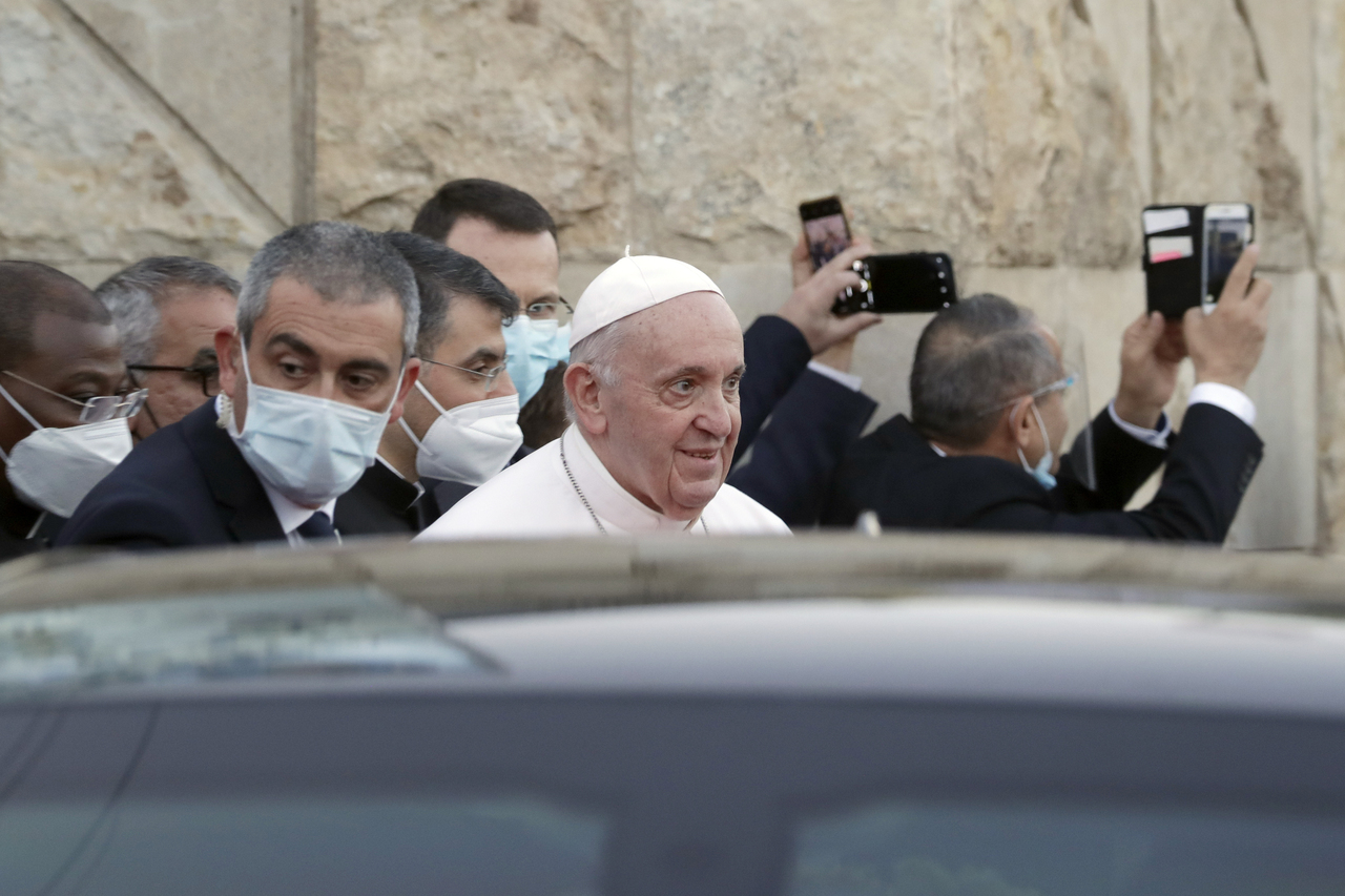 Pave Frans’ første dag i Irak var preget av musikk, sang, flagg og blomster, samt oppfordringer om likhet, fred og mangfold.