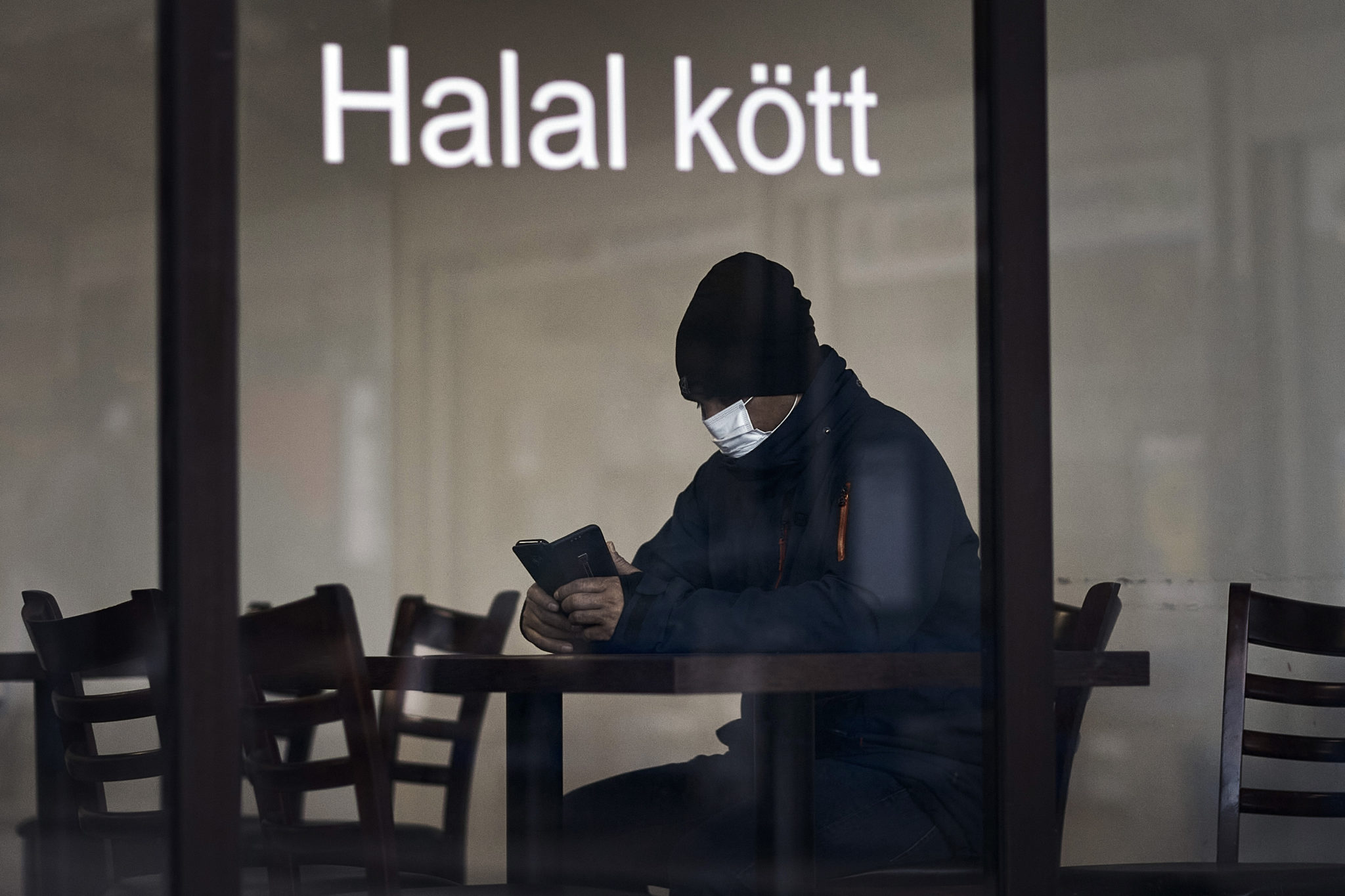 En mann sitter ved et kafébord i Rinkeby utenfor Stockholm. Sverige er totalt forandret, og myndighetene veksler mellom å si at slik må det være og at de ikke har sett de negative konsekvensene. De blir like overrasket hver gang. Det er ikke svenskene. De har lært. Foto: Andres Kudacki/AP/NTB