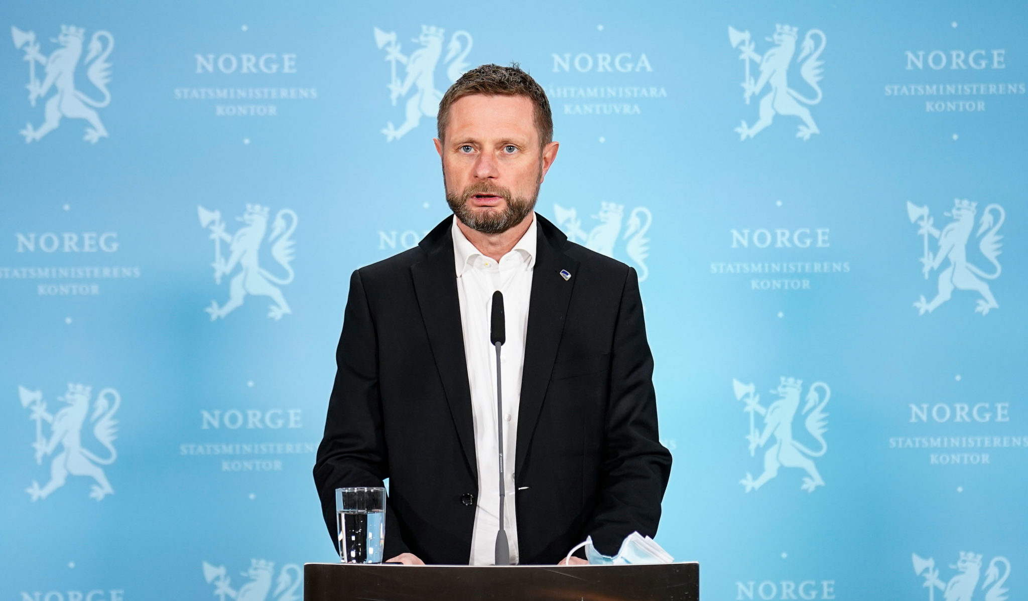 Helseminister Bent Høie møter pressen mandag kveld i forbindelse med smittesituasjonen i Oslo og Viken. Foto: Torstein Bøe / NTB