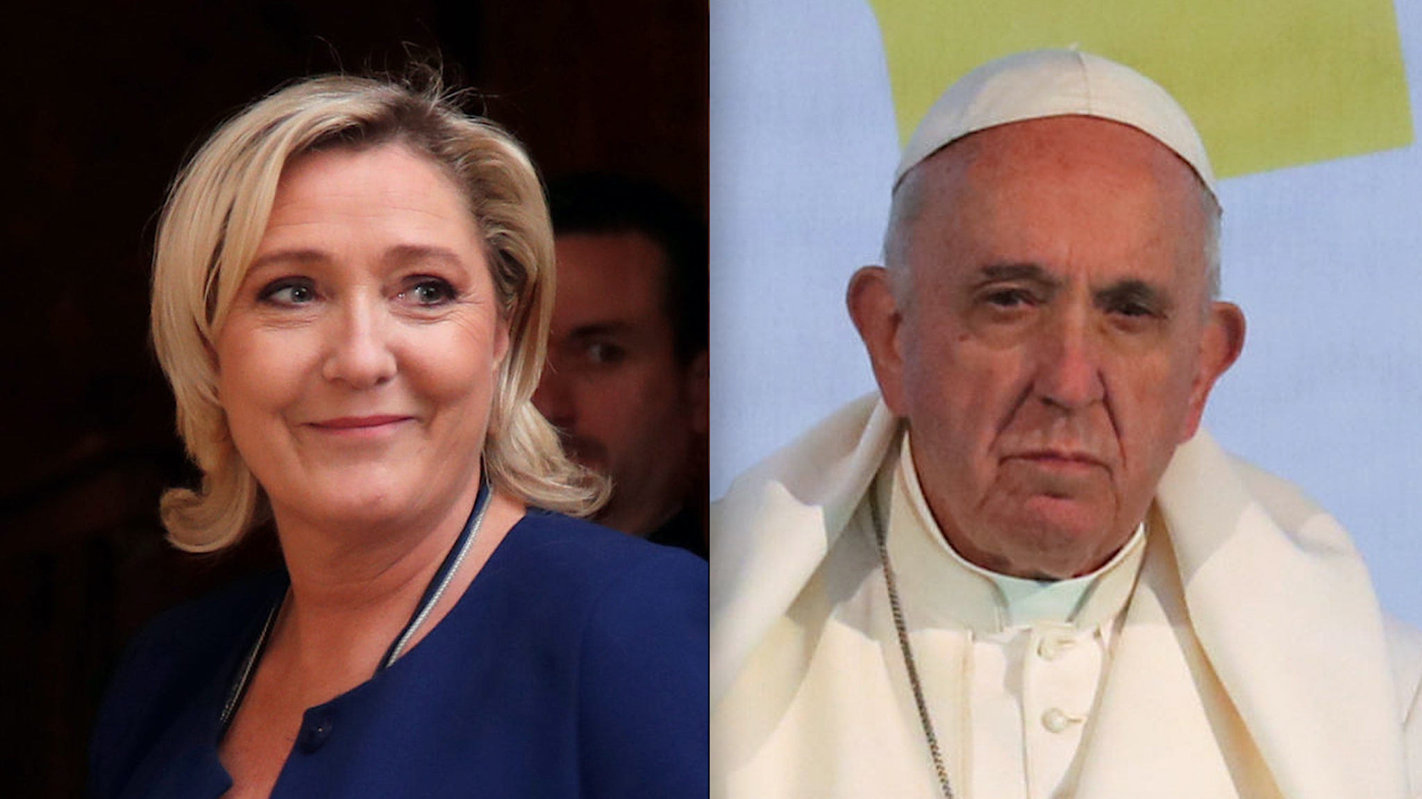 «Gi keiseren hva keiserens er, og Gud hva Guds er», lød reaksjonen fra Marine Le Pen, som la til at mange troende ville bli glade hvis paven tenkte mer på det som skjer i kirken enn i stemmeurnene.