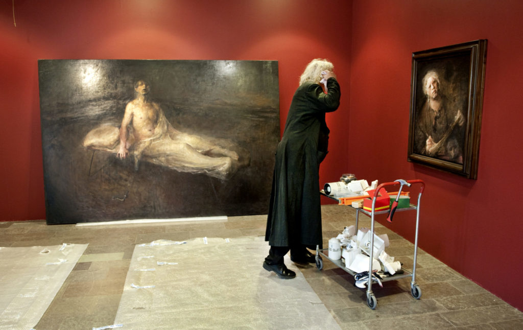 Odd Nerdrum er en av de siste kunstnere som ville mene noe om kunst i det offentlige rom. Men hans syn og malerier falt ikke i smak. Bjarne Melgaard er en annen og hans syn lå nærmere journalistenes og kulturelitens. Stockholm 2011: Odd Nerdrum åpner utstilling med selvportretter på Edsviks kunsthall i Stockholm.Foto: Lars Pehrson / Scanpix