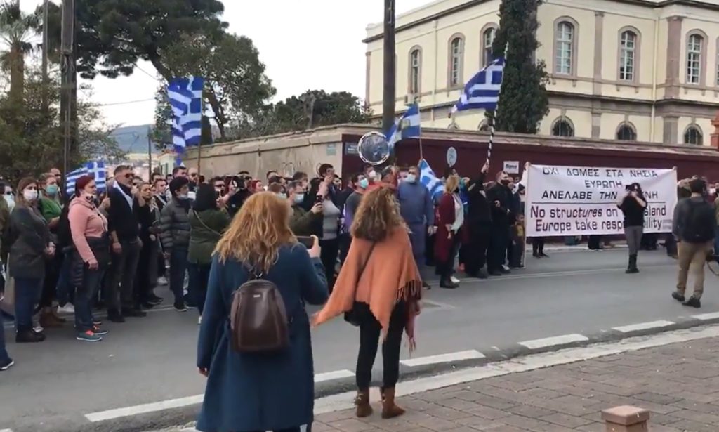 EU’s @YlvaJohansson is on Lesvos today. Protest of about 200 people echoing with military chants, Greek anthem, various slogans before her press conference. https://t.co/dUP3J9TJ7l pic.twitter.com/zyxOliBtcF